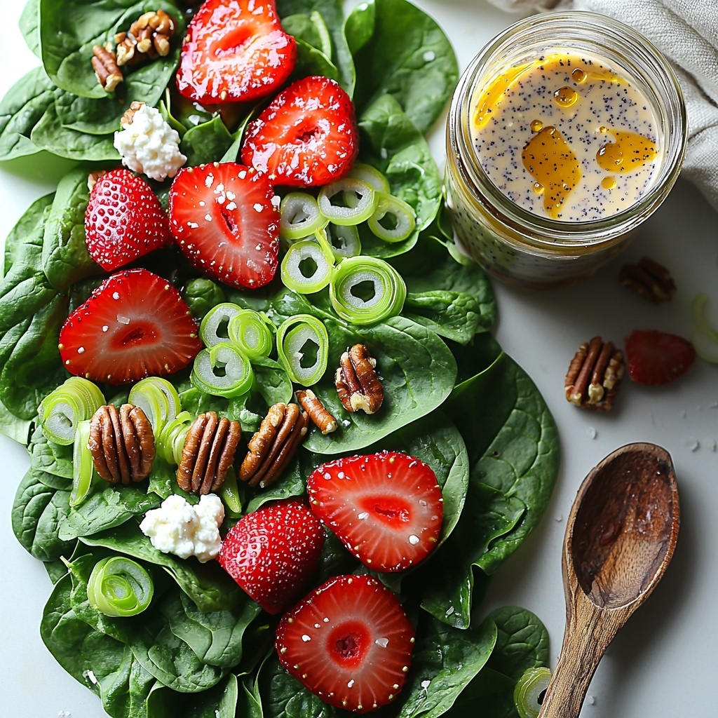 Bright, refreshing, and packed with vibrant flavors, the Sweet Strawberry Spinach Salad with Dreamy Poppy Seed Dressing Recipe is a delightful way to brighten up any meal. This salad brings together crisp baby spinach, juicy strawberries, creamy goat cheese, and crunchy candied pecans, all tied together with a luscious, homemade poppy seed dressing that’s just dreamy. It’s a true celebration of sweet and savory, perfect for spring or summer gatherings, or simply when you want to treat yourself to something fresh and exciting.