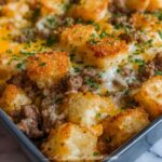 This hearty Tater Tot Casserole with Ground Beef is a comforting, easy-to-make dish perfect for family dinners. Featuring seasoned ground beef, creamy mushroom soup, and layers of crispy tater tots topped with melted cheddar cheese, it’s a classic casserole that combines savory flavors with a satisfying texture.