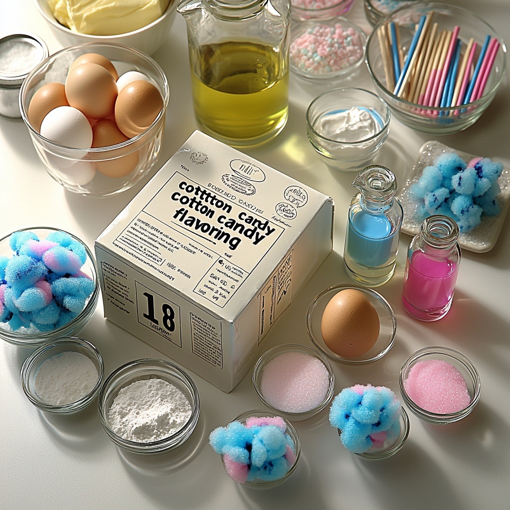- Prepare Cake Batter: In a large mixing bowl, combine the white cake mix, egg whites, vegetable oil, water, and 1 tablespoon of cotton candy flavoring. Mix thoroughly until smooth, about 2 minutes. Then, divide the batter evenly into two separate bowls. Add blue food coloring to one bowl and pink food coloring to the other, stirring each until fully incorporated.