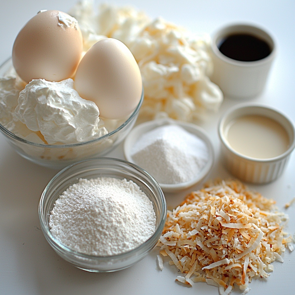 This recipe is wonderfully simple, relying on just a handful of essential ingredients that come together to create a truly impressive dessert. Each component plays a key role: the egg whites build the airy, crisp shell; the sugar adds just the right sweetness and gloss; and the coconut milk and toasted coconut bring that tropical flair and creamy texture that make these pavlovas unforgettable.